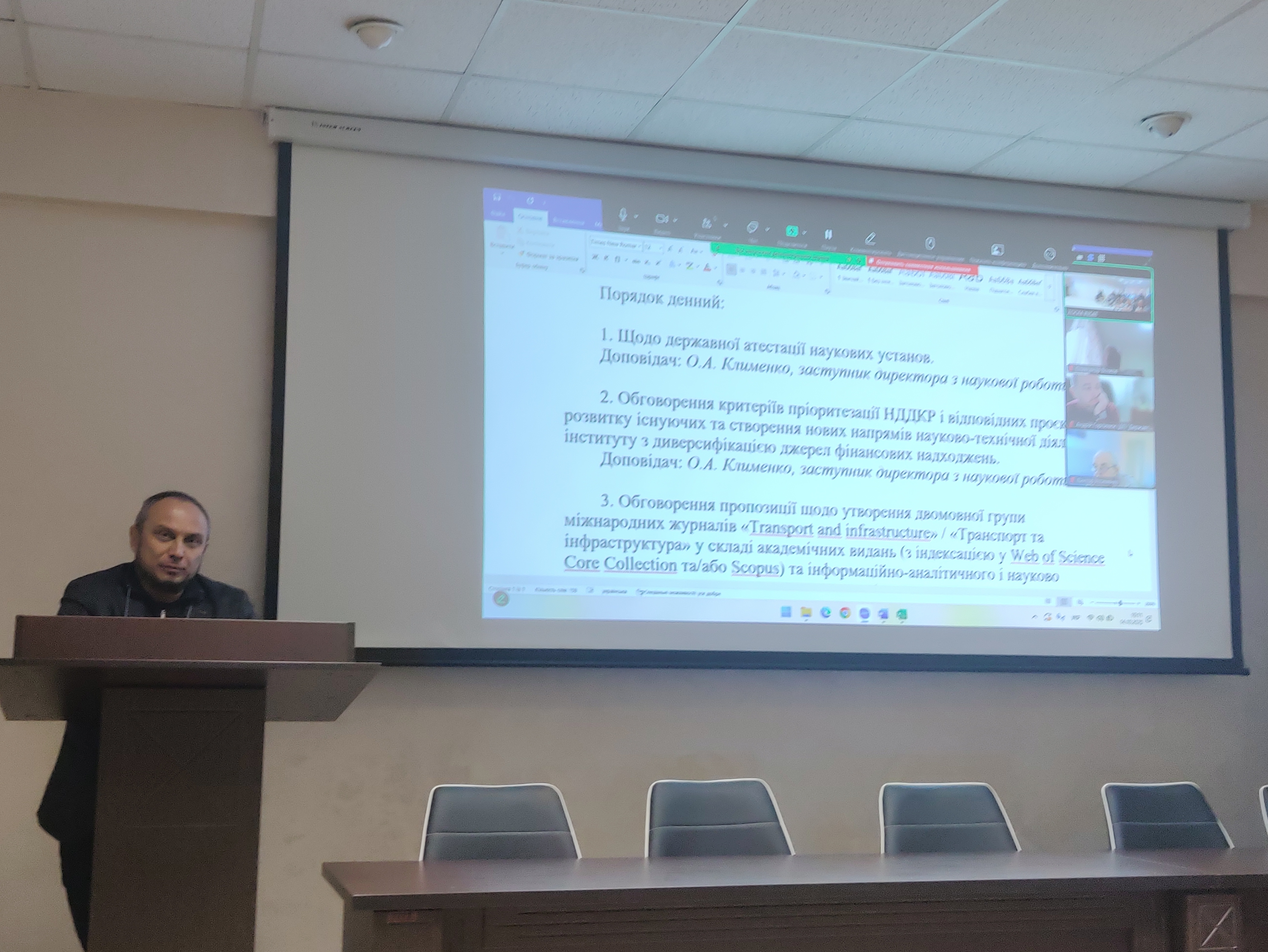 Заступник директора з наукової роботи Олексій КЛИМЕНКО виступив із доповідями з питань порядку денного, за якими відбулося обговорення.