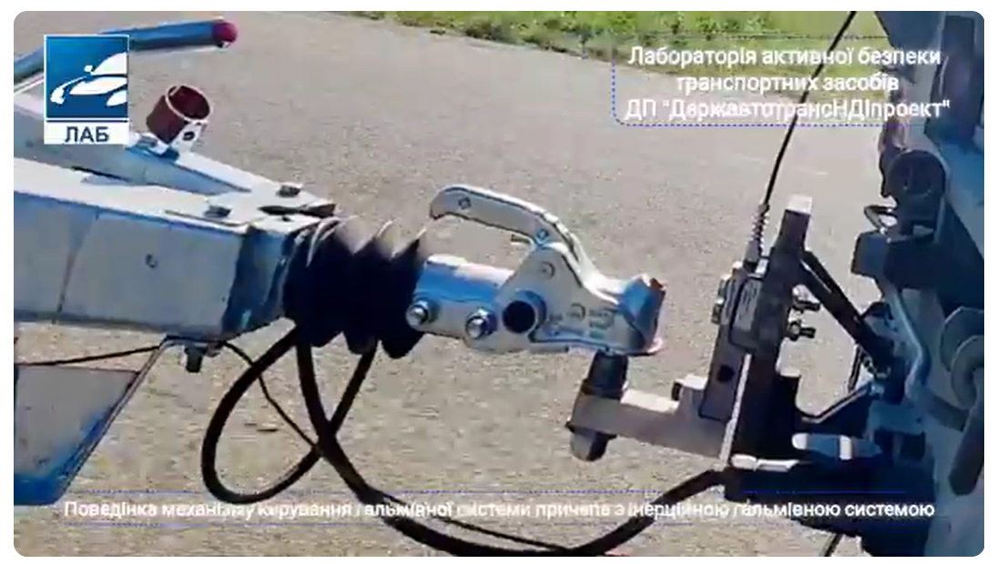 Наші колеги з лабораторії активної безпеки транспортних засобів (ЛАБ) продовжують випробування. До вашої уваги випробування причепа. На відео демонструється поведінка механізму керування причепа з інерційною гальмівною системою.